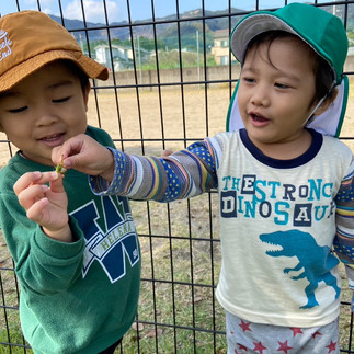 今日もバッタを自分で捕まえて嬉しそうにお友だちと、見せ合いっこしていましたよ☆彡
