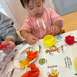 フラワーペーパーをくしゃくしゃしたり、糊を指で塗ってくっけたりしましたよ