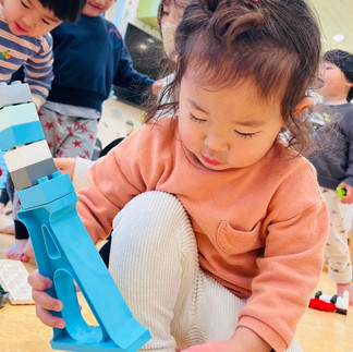 ブロックを積み上げたり、組み立てたり黙々と遊ぶ姿がみられました♪