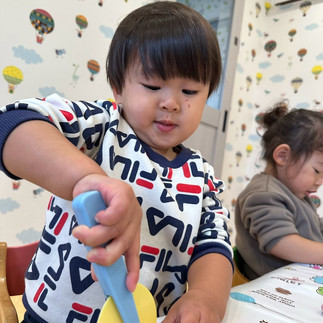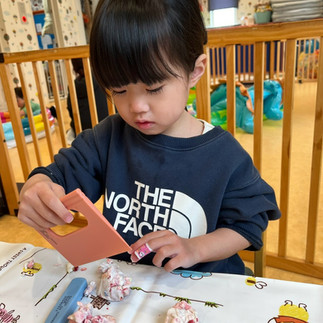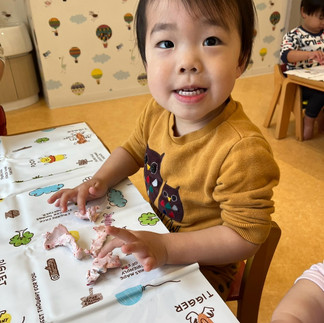 こねたり、ちぎったり、粘土遊びの道具を使って切ったり伸ばしたり、様々な形に変身させて黙々と遊んでいましたよ👀💖