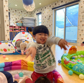 ボールプールでも、ボールを投げ合いっこしたり、好きな色のボールを集めたり元気いっぱい遊んでいました🌈