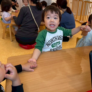 おやつを食べて、朝の会ではお友だちと手を繋いで一緒に楽しくお歌を歌っていましたよ♪