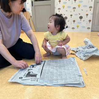 新聞紙遊びを行いました໒꒰ྀི∩˃ ᵕ ˂∩꒱ྀི১
