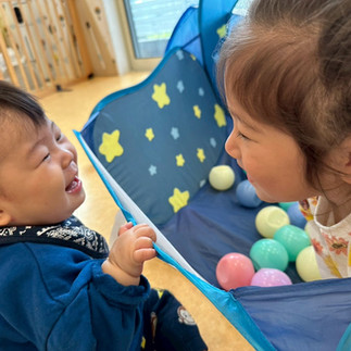 プールの中にお友だちと一緒に入ったり、ボールを転がして楽しんでいました(^O^)