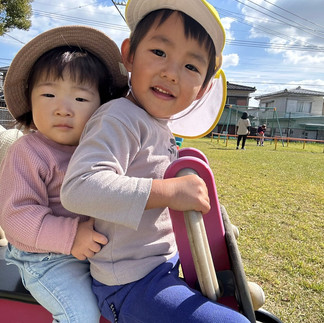 広場に着くと、かけっこをしたり大きなバッタを見つけ追いかけたり、、、