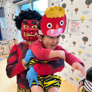 おやつを食べた後は、みんなでオニのお面を作りました(^O^)
