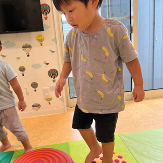 みんな上手にバランスストーンの上を歩いたり、飛び跳ねたりしたいましたよ👋
